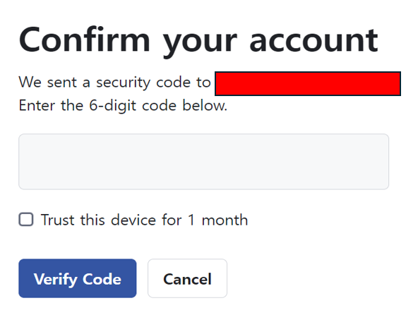 위와 같이 아이디와 패스워드를 입력한 후 로그인하게 되면 아래와 같이 이메일 인증을 요구합니다.
